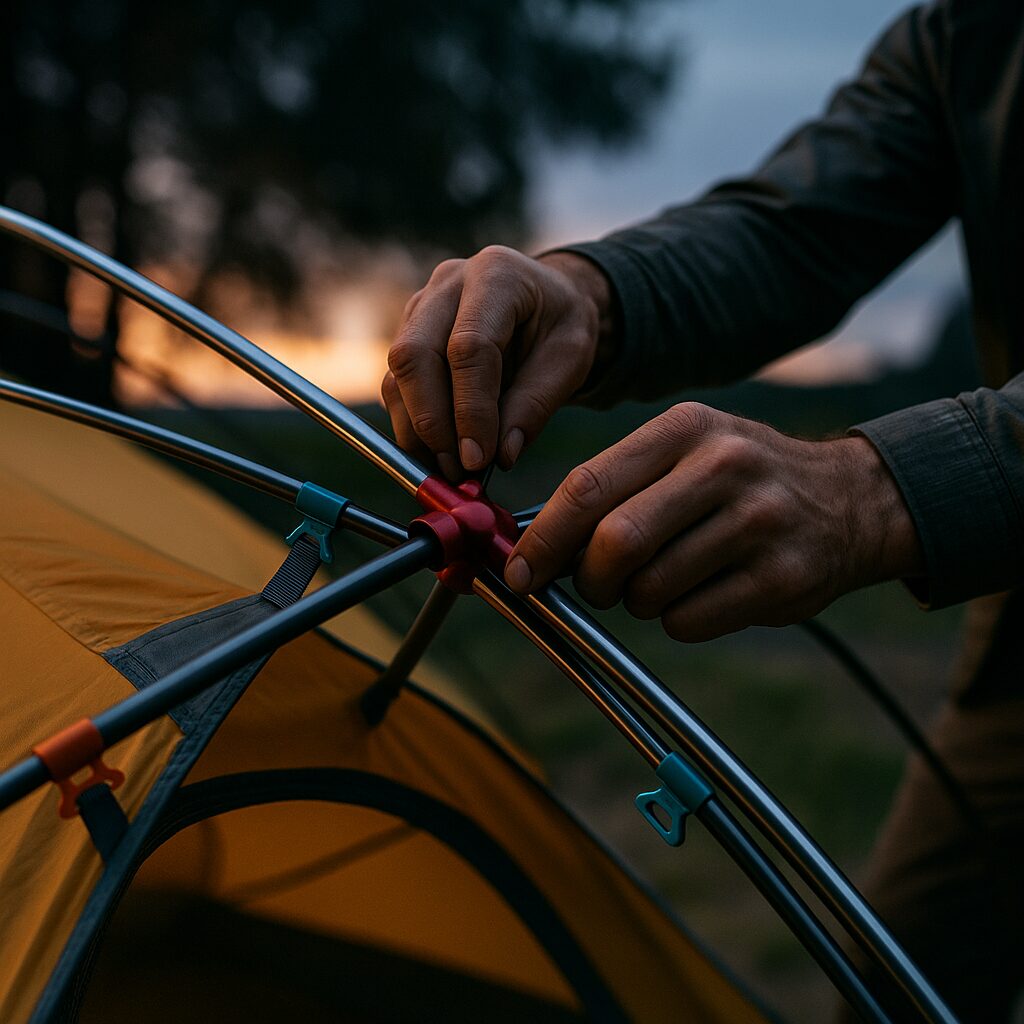 設営のしやすさは構造とフレーム設計で決まります。ドーム型は交差ポールによって自立性が高く、設営がシンプルです。トンネル型や2ルームはフレーム本数が増えますが、居住空間を広く確保しやすい設計です。ワンタッチは一体型フレームにより時短が図れますが、テンション調整の自由度や風への耐性はモデル差が出やすく、固定点の数と位置、ガイラインの取り方が安定度に影響します。