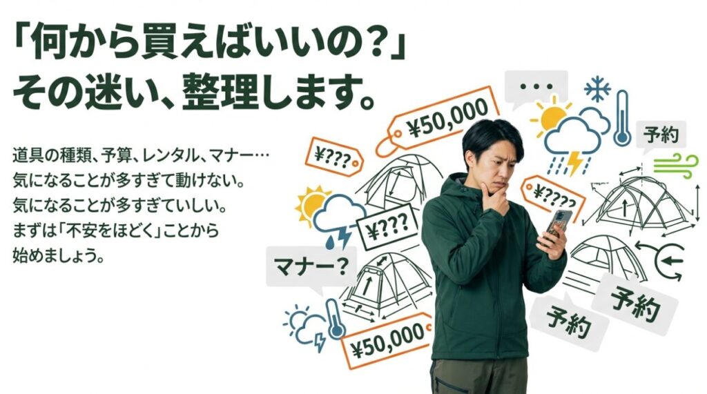 金額はあくまで一般的な目安です。ブランドやサイズ、季節対応で上下します。中古やフリマも手ですが、テントや寝袋みたいに「安全に関わる系」は状態と保証をよく見てください。価格や在庫、キャンプ場の利用ルールは変わることがあります。正確な情報は公式サイトをご確認ください。安全面に不安がある場合は、最終的な判断は専門家にご相談ください。