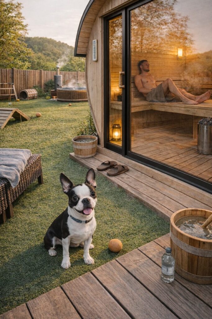 これなら、サウナ室から出ればすぐに愛犬が遊んでいる姿を確認できますし、外気浴中も足元に寄ってくる愛犬と一緒に風を感じる……なんていう幸せな時間を過ごすことができるのです。物理的な距離が近いため、「一人ぼっちにさせている」という罪悪感なく、飼い主も心置きなく汗をかくことができます。